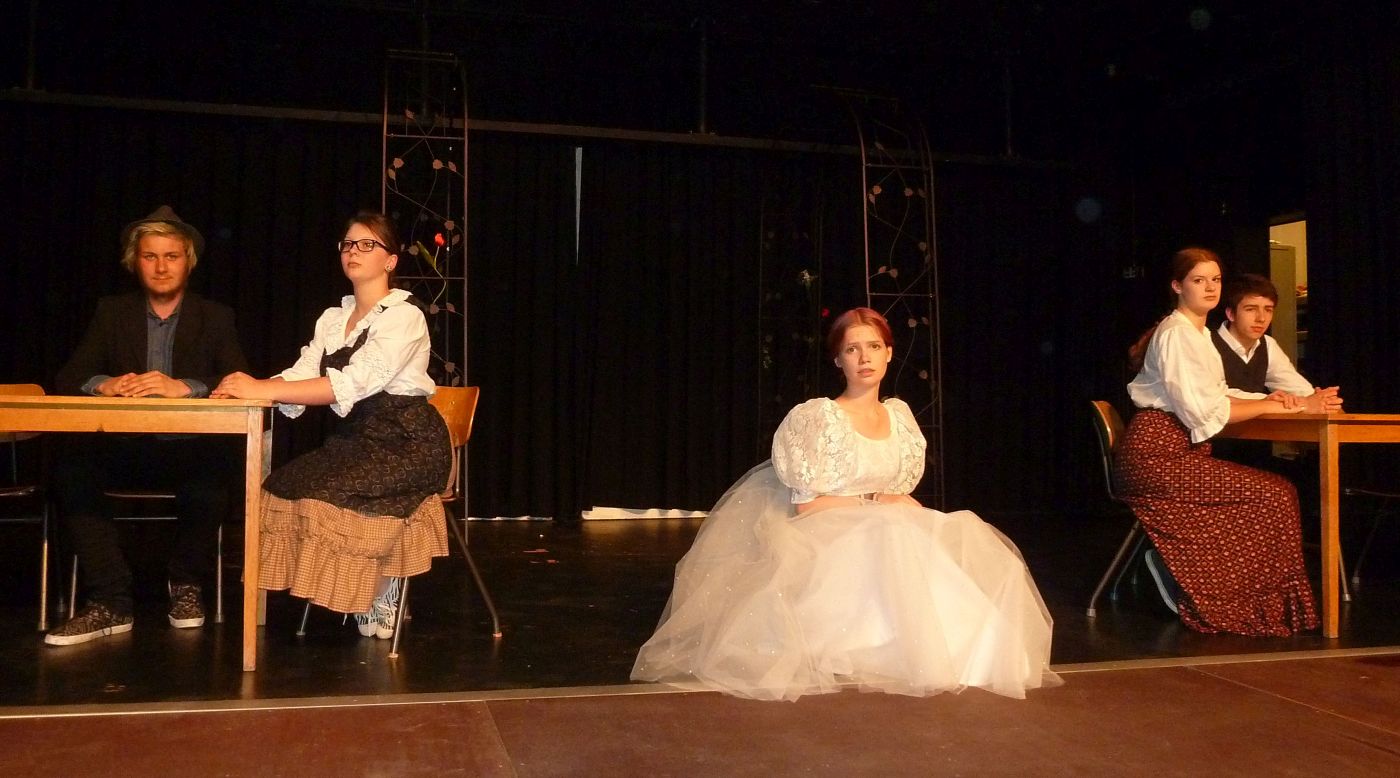 Die Theatergruppe am Gymnasium der Benediktiner brachte diesen Bühnenklassiker (Uraufführung 1938, Pulitzerpreis im selben Jahr) nach intensiven Proben zur Aufführung und nahmen die Zuschauer in der Aula mit in eine Szenenfolge, die das alltägliche Leben in einer fiktiven Kleinstadt namens „Grover's Corners“ in Neuengland zeigt. Alles ist nett hier, harmonisch und beschaulich. In drei Akten wird erzählt, wie der Alltag verläuft und wie sich das Leben allmählich verändert. Eigentlich geschieht nichts Besonderes... Obwohl der kleinbürgerlichen Welt von 1901-1913 verhaftet, wurde gerade darin die Zeitlosigkeit der menschlichen Verhaltensweisen deutlich, die immer wieder zum Lachen, Berührtsein und Nachdenken anregte.