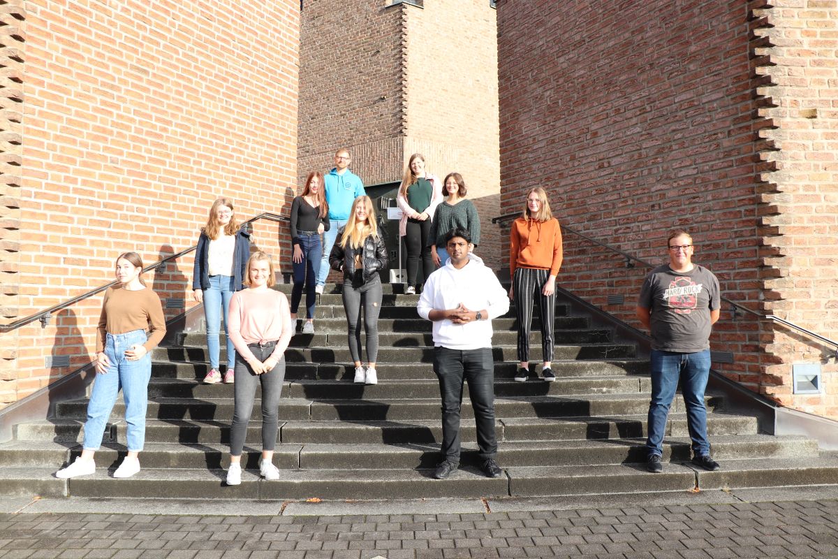 Wir - das sind Schülersprecher Majuran Sivakumar (Q1), die stellvertretende Schülersprecherin Thea Ewers (Q1), Kassenwart Torben Völlmecke (Q1), Schriftführerin Carla Nowag (9c) und der Beirat, bestehend aus Melissa Melletat (Q1), Cora Lewe (Q1), Nele Pasternak (EF), Tamika Kunk (9b) und Emma Prohn (EF).