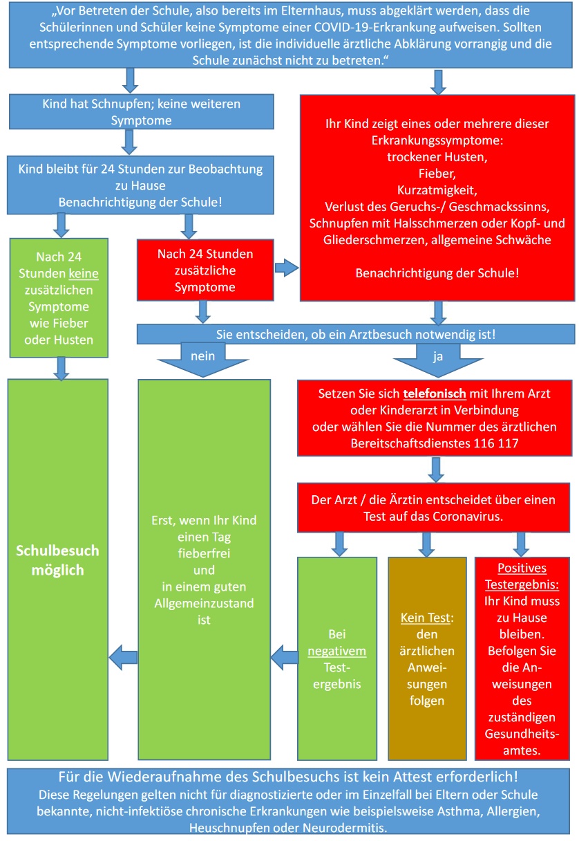 Seitens des NRW-Schulministeriums gibt es für den Fall, dass ein Kind Krankheitssymptome zeigt, folgende Handlungsempfehlungen für Eltern: