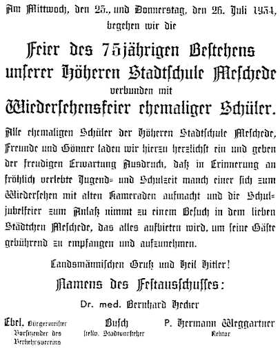 - Mescheder Zeitung vom 25.126. Juli1934.