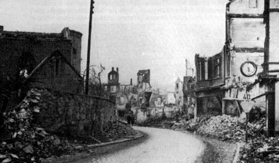 Zu den angesprochenen Schwierigkeiten, die der Chronist in seinem Eintrag andeutete, zählte vor allem der Antrag von Landrat Ebel vom 27. Juli 1945 an den Oberpräsidenten der Provinz Westfalen für das Höhere Schulwesen in Münster, die Städtische Oberschule in eine staatliche Anstalt umzuwandeln, da der Trägerverbund, bestehend aus der Stadt Meschede und den Gemeinden Meschede-Land, Calle, Remblinghausen, Eversberg, Heringhausen, Nuttlar, Ostwig, Ramsbeck und Velmede, die Schullasten in Zukunft nicht aufbringen könnte. "Die Stadt Meschede war an den Ausgaben belastet mit 40 %, die übrigen Unterhaltskosten der Oberschule wurden entsprechend der Steuerkraft der einzelnen Gemeinden und nach Maßgabe des Heimatverhältnisses der Schüler auf die einzelnen Vertragsteilnehmer umgelegt."6 Die finanziellen Schwierigkeiten sind vor allem aber grundgelegt in den schweren Luftangriffen, die Meschede am 19. und 28. Februar, sowie am 23. März 1945 zu 80 % zerstörten.